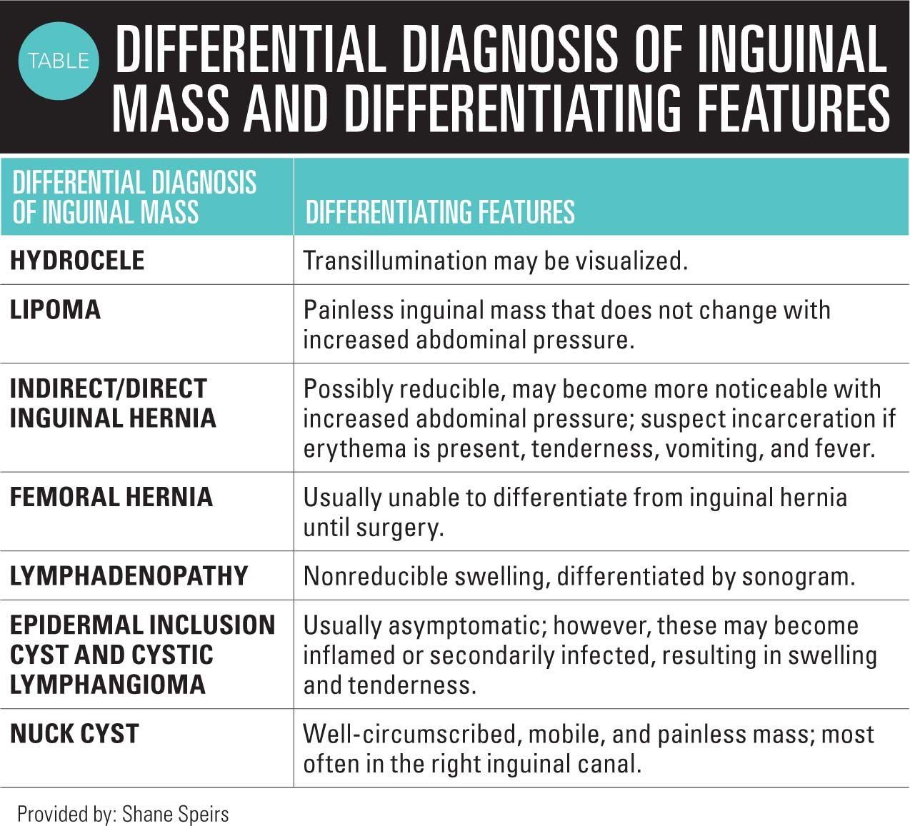 3. Tilt L, Kessler DO. Rapid evaluation of an inguinal mass in a female infant using point-of-care ultrasound. Pediatr Emerg Care. 2014;30(5):366-367.