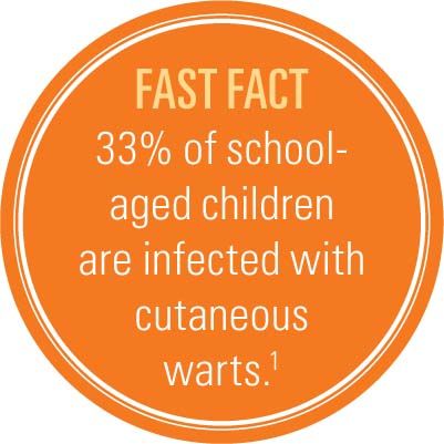 A recent study showed that 33% of school-aged children are infected with cutaneous warts.1 Young age and non-Caucasian skin types were associated with increased chances of clearance of cutaneous warts.2 However, consistent epidemiological data is limited because most studies focus on specific population subsets.3