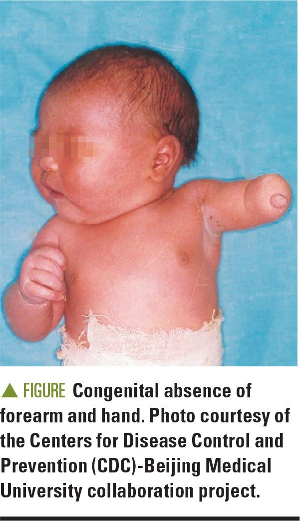 2. Centers for Disease Control and Prevention. Birth defects: Upper and lower limb reduction defects. Available at: https://www.cdc.gov/ncbddd/birthdefects/ul-limbreductiondefects.html. Updated April 20, 2018. Accessed February 21, 2019.