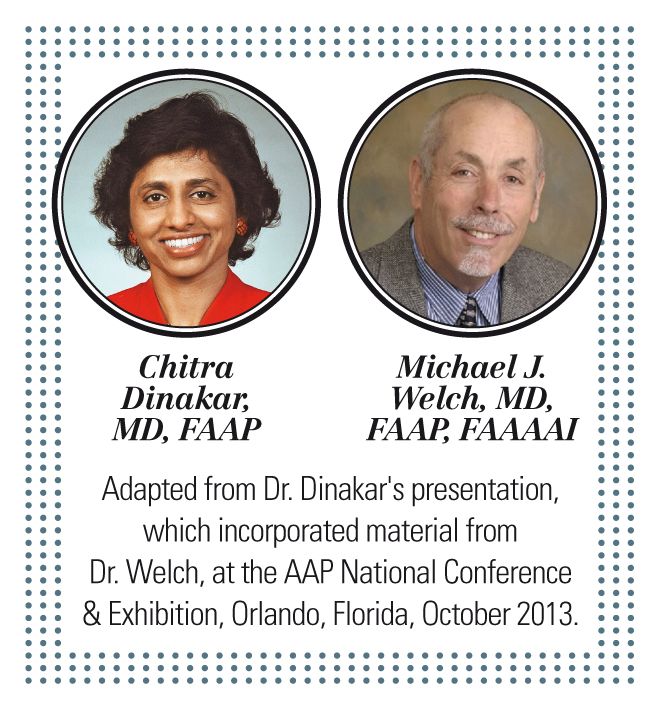 Used with permission from Chitra Dinakar, MD, FAAP, University of Missouri-Kansas City, and Children’s Mercy Hospitals and Clinics, Kansas City; and Michael J. Welch, MD, FAAP, FAAAAI, clinical professor, University of California, San Diego, School of Medicine, and co-director, Allergy and Asthma Medical Group and Research Center, San Diego. Dr Dinakar has nothing to disclose in regard to affiliations with or financial interests in any organizations that may have an interest in any part of this article. Dr Welch reports speaker fees and contracted research for Teva Pharmaceuticals.