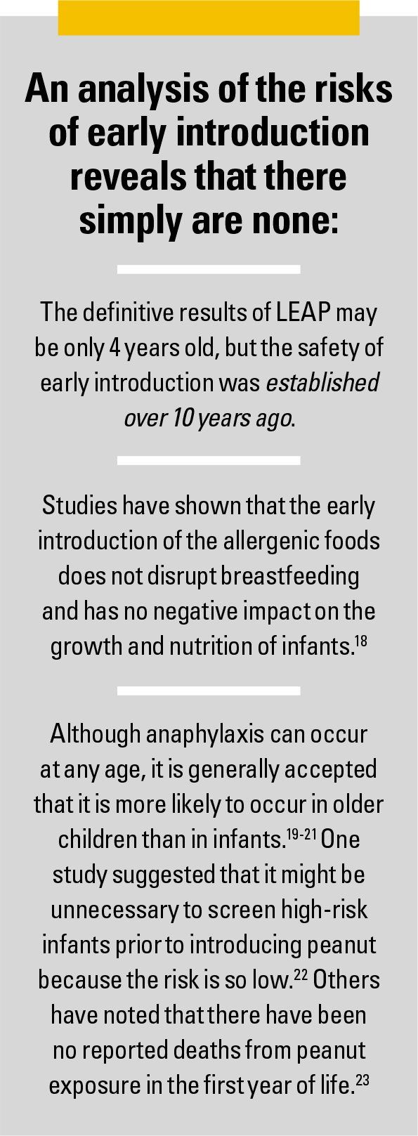 9. Du Toit G, Roberts G, Sayre, et al; LEAP Study Team. Randomized trial of peanut consumption in infants at risk for peanut allergy. N Engl J Med. 2015;372(9):803-813.