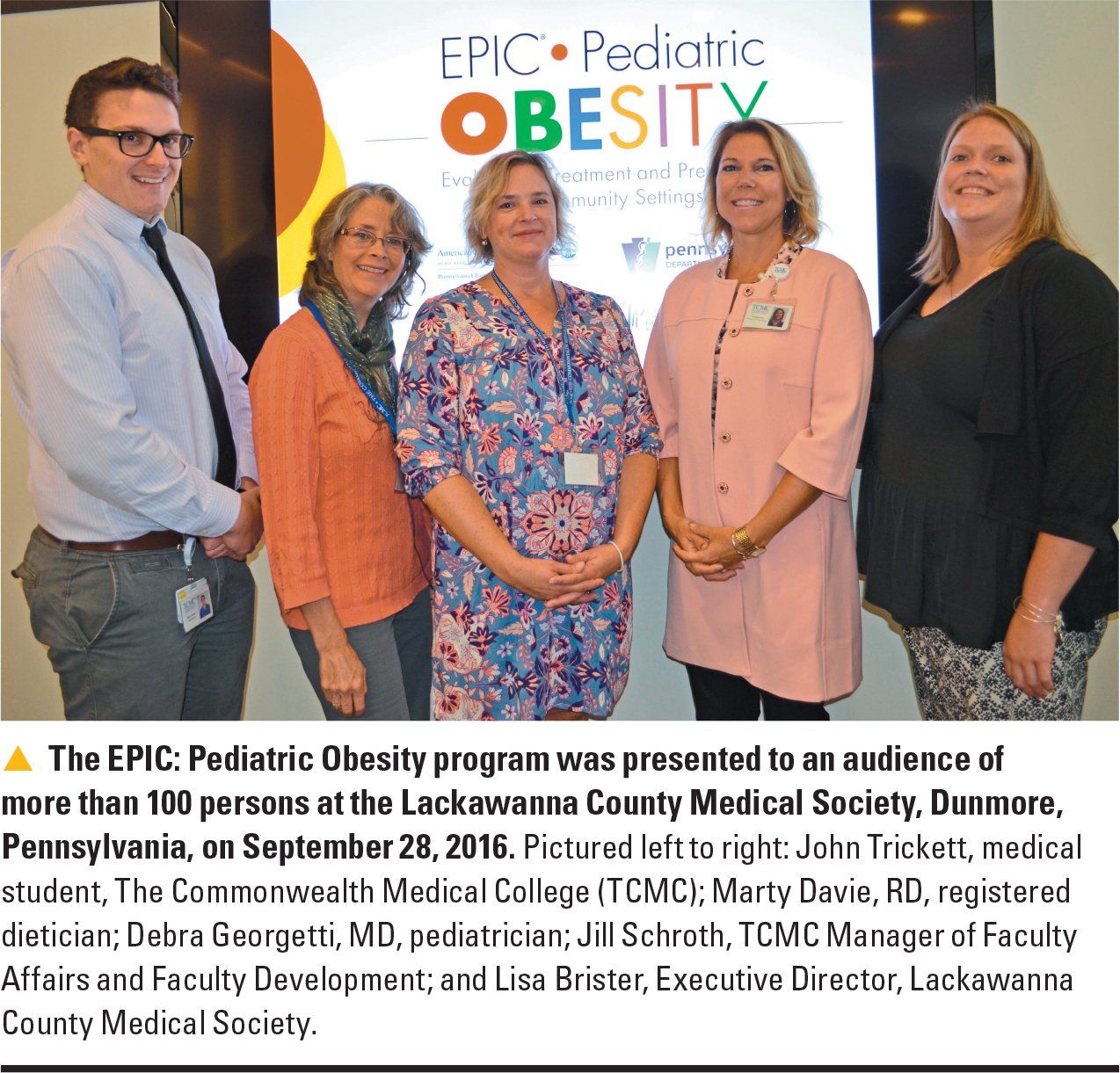 The Pennsylvania Chapter, American Academy of Pediatrics (PA AAP), developed a unique program to address the many facets of pediatric and adolescent obesity. Through the “EPIC: Pediatric Obesity: Evaluation, Treatment, and Prevention in Community Settings” program, locally based, physician-registered dietitian/nutritionist (RDN) teams bring a live, interactive update on pediatric overweight and obesity to community-based healthcare providers. The program links together a wide array of treatment options to best help patients and families. The program model offers a unique opportunity to foster a team approach to address a complex health issue.