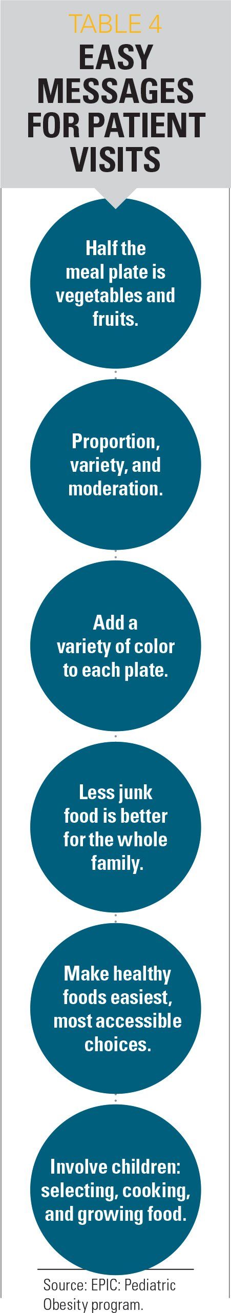 Parents are the role models and the family is the treatment unit. Parents benefit from education about lifelong implications of early habits that lead to healthy lifestyles and the importance of “starting off right.” Parent knowledge cannot be taken for granted. Education is needed regarding portion sizes especially for toddlers, alternatives to food for reward and punishment, and understanding food labels. Healthcare providers should not assume parents know how to select and prepare many vegetables and fruits, or that they have been taught how to cook. The RDNs are invaluable partners. These RDN presenters share tips healthcare providers can use immediately and discuss the impact RDNs can have on patient outcomes.