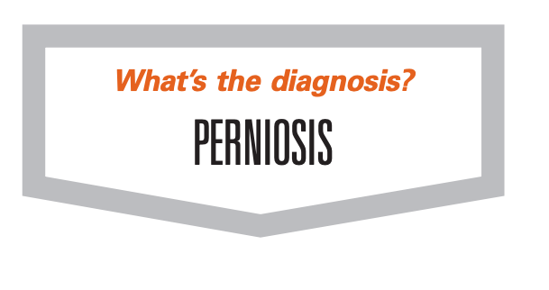 Perniosis, also referred to as pernio or chilblains, is a result of an inflammatory response to the cold or damp, but not to freezing temperatures.1 The lesions result in erythematous, swollen, and red-purple fingers, toes, nose, and/or ears. Pain, tenderness, and itchiness may accompany these lesions (Figure). In severe cases, pernio can cause sores or blisters.