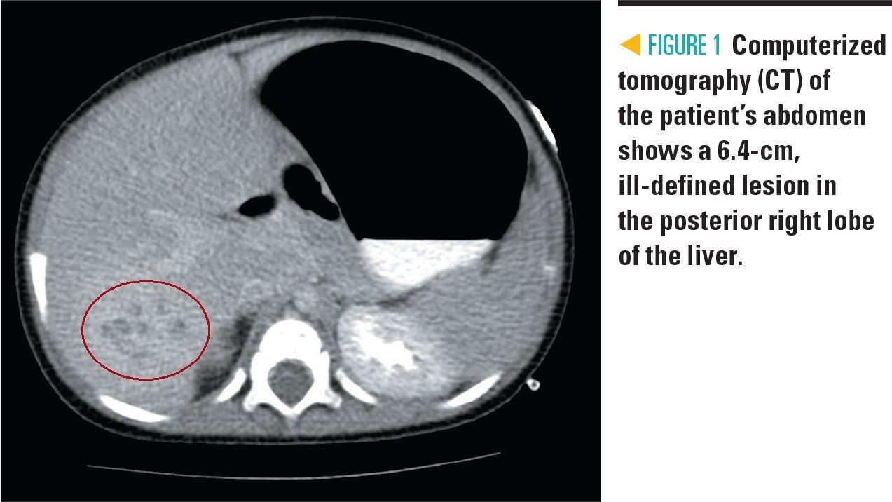 Inflammatory pseudotumors (IPT) are rare, benign, solitary, well-demarcated lesions caused by proliferation of inflammatory cells.1-3 Other terminology used to describe IPT includes inflammatory myofibroblastic tumor, plasma cell granuloma, fibrous histiocytoma, fibroxanthoma, and xanthogranuloma. This type of benign lesion is most commonly found in the lung, although extrapulmonary sites have been identified, including the head and neck regions, orbit, major salivary glands, submandibular glands, lymph nodes, breast, kidney, pancreas, gastrointestinal (GI) tract, liver, spleen, retroperitoneum, genitourinary tract, and soft tissue. As of 2011, fewer than 300 cases of hepatic inflammatory pseudotumor have been identified and reported.1 From 1971 to 2008, only 35 pediatric cases were reported with an additional 9 pediatric cases from 2009-2014. Increased IPT identification can be attributed to advances in medical imaging.