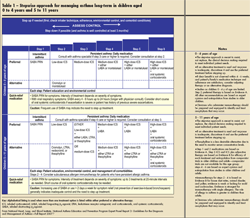 Treatment, including selection of an appropriate medication regimen, is based on the level of severity or control of the child’s asthma. The EPR-3 has created a stepwise approach that easily allows the clinician to choose the appropriate treatment to achieve and maintain control (Tables 1 and 2).2 For a review of how to make an initial assessment of the severity of a child’s asthma and select medications based on that severity, see the Table in “Managing Asthma in Children, Part 1” (CONSULTANT FOR PEDIATRICIANS, May 2009).