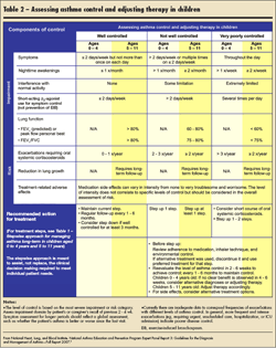 Control of asthma can be defined as the degree to which symptoms are alleviated by intervention and the degree to which the goals of therapy are met. The degree of control can be categorized as well controlled, not well controlled, or very poorly controlled (see Table 2).
