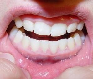 Six months later, our dermatology evaluation verified that the patient had been taking minocycline, 100 mg twice daily for 5 years, missing doses infrequently. The blue-gray discoloration was noted to involve not only the dorsal aspect of her left foot and ankle (Figure 1) but also 2 common sites of trauma-below the left knee (smaller patch in Figure 2) and similar, more subtle discoloration over both shins. Examination of her maxillary/mandibular mucosal sulci revealed similar pigmentation (Figure 3). Note in Figure 1 that extension of discoloration into the interdigital spaces supports an endogenous source of pigment. The patient’s face, back, and chest were free of acne. These characteristic features supported a diagnosis of minocycline hyperpigmentation.