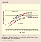 We sought to improve our approach to neonatal jaundice, reduce variability of clinical practice, decrease the need for readmission, and assure patient safety. Clinically estimating the degree of jaundice has always been challenging since it is affected by lighting, skin color, and other factors. Infants now reach their peak bilirubin levels when they are no longer in the hospital, on approximately day 4, with perhaps a later peak in infants of Asian ethnicity. A promising approach to these problems appeared in a landmark article by Bhutani and colleagues published in Pediatrics in early 1999, when we were developing our program.2 The investigators advocated drawing a bilirubin in all newborns at the time of their newborn metabolic screen. By plotting the hour-specific bilirubin on a graph, one can predict with some accuracy which infants need more extensive evaluation and closer follow-up.