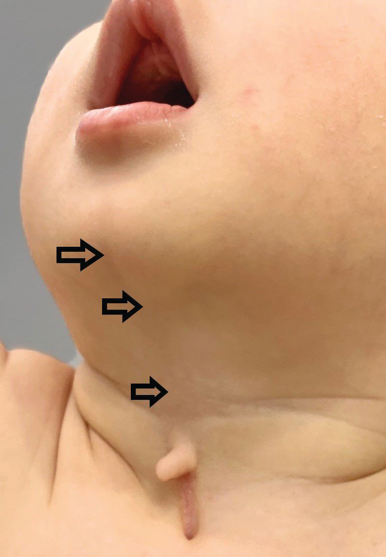 8. Crippa BL, Bedeschi MF, Cantarella G, et al. Congenital midline cervical cleft: clinical approach to a congenital anterior neck defect. Congenit Anom (Kyoto). 2015;55(2):112-115. doi:10.1111/cga.12086