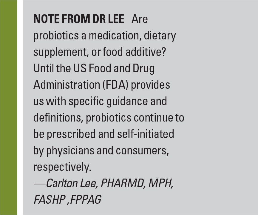 In December 2014, the US Food and Drug Administration (FDA) issued a warning to healthcare providers about the risk of probiotic use in immunocompromised patients, referring to an example involving a premature infant who developed fatal gastrointestinal mucormycosis from Rhizopus oryzae.32 The infection was attributed to a contaminant in an unopened container of probiotic powder with active ingredients listed as Bifidobacterium lactis and L rhamnosus. This is a reminder that probiotics are dietary supplements not subject to FDA review, and providers wishing to use these products as drugs (eg, to treat, mitigate, cure, or prevent a disease or condition) should submit an Investigational New Drug (IND) application for review. On the other hand, infant formulas with added probiotics are under FDA regulation and must be made in compliance with good manufacturing practices, although probiotics’ proven benefit is unclear with a paucity of robust evidence.36