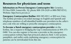 Anticipatory guidance should not be limited to teens who are alreadysexually active. Indeed, since adolescents often fail to use contraceptionat their first intercourse, sexually inexperienced teens are particularlyin need of this information. There is no reason to suppose that learningabout emergency contraception will encourage adolescents to initiate sexualactivity; rather, like other kinds of sex education, such knowledge is likelyto promote safer sexual behavior in those who have already decided to besexually active. Information about emergency contraception should also beavailable in the office on posters, wallet cards that teen patients canpick up discreetly in the waiting room or bathroom, and guides (like the"Guide For Patients") that they can take home or share with friends.For information on where these materials can be obtained, see "Resourcesfor physicians and teens".