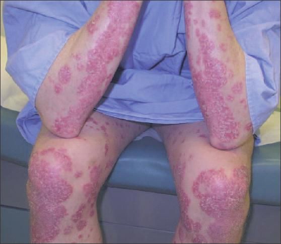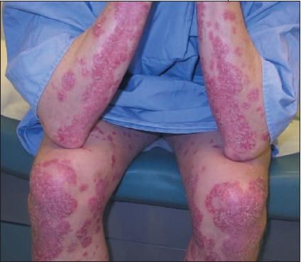 This patient has severe psoriasis. There is increasing evidence that the inflammatory nature of psoriasis is associated with an increase in comorbid conditions, such as obesity and cardiovascular disease, and that people with psoriasis have a shortened life expectancy. Cardiovascular disease is the comorbidity that appears to be most closely linked to psoriasis. A recently published review of a large general practice database in the United Kingdom showed that psoriasis is an independent risk factor for myocardial infarction (MI).1 This risk was increased in young adults with severe disease: 30-year-old patients who had severe psoriasis had a relative risk for MI of 3.1 compared with controls.