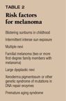 Table 2 summarizes the known risk factors for melanoma. Unidentifiedfactors probably also play a role.