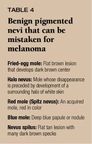 Learn to recognize the benign moles. Five types of benign nevi may looklike a changing mole and thus be easily confused with melanoma (Table 4).