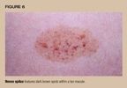 The nevus spilus is a mole that acquires spots (Figure 6). An uncommonnevus, it is a tan macule with many tiny (>0.1 mm) dark spots. The lesions,which often are present at birth, may acquire more dark spots as the childgrows.