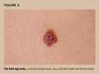 The fried-egg mole, a compound nevi, has a flat border and a raised,darker center (Figure 2). Many children have these nevi.