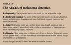 The following guidelines can help distinguish melanoma from benign nevi: