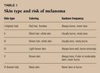Although melanomas also develop in skin that has not been exposed tosunlight and in dark-skinned individuals who do not sunburn, a careful historyof sun exposures should be a part of every mole evaluation.1,2Table 1summarizes the risk of melanoma by skin type.