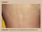 The halonevus is a pigmented mole surrounded by a halo of depigmentedskin (Figure 3). In time the mole will disappear. The disappearance of anevus is common and believed to be physiologic. About half the childrenwith halo nevi will have patches of vitiligo elsewhere. Some authoritiesbelieve that vitiligo represents an unregulated normal mechanism for eliminatingnevi.