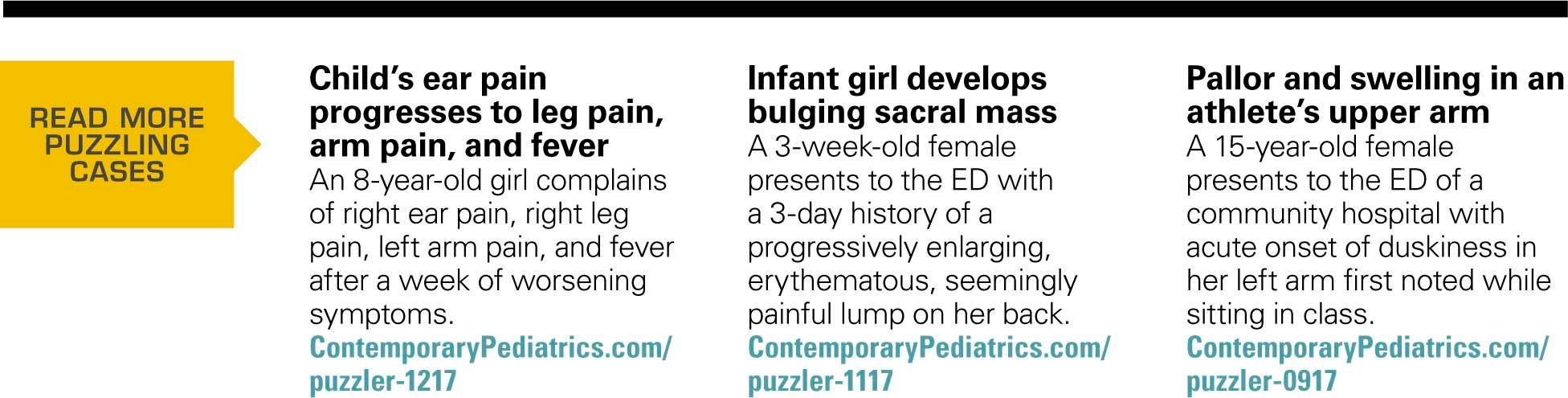 Kawasaki disease is a childhood vasculitis with 50% of cases occurring between ages 6 months and 2 years.5,9 The disease in infants aged younger than 6 months includes approximately 10% of all cases,5 and this age group is at higher risk for delayed diagnosis and coronary artery abnormalities.3,5,6,9 The nonspecific clinical features and absence of specific tests make it difficult to diagnose KD in general, and it is even more challenging in these infants because infantile KD can present with prolonged fever and irritability with no other clinical signs and symptoms (ie, no cervical lymphadenopathy, no conjunctivitis, and no hands or feet edema).3,6,7 Subsequently, maintaining a high index of suspicion in infants aged younger than 6 months with persistent unexplained fever is the key for diagnosis and timely treatment.