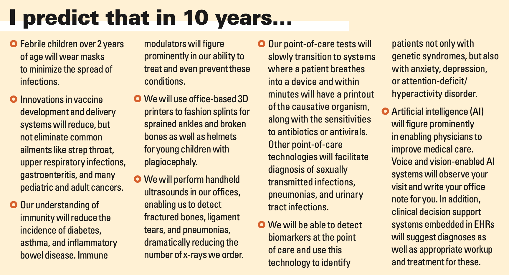 Over 20 years ago, Dr. Andrew J. Schuman predicted what lay ahead for medicine and pediatrics. He revisits those predictions and looks toward what the next 10 years may hold.