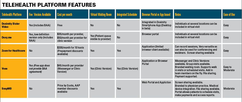 In response to the COVID-19 pandemic, pediatricians have rapidly adopted telehealth (TH) to provide remote health care services for patients. Although state and federal emergency mandates permit temporary use of non-telehealth video applications such as Zoom, Skype, Facetime, and others for the duration of the pandemic, eventually medical practices will be limited to TH service providers if they plan to continue to provide virtual office visits. The COVID-19 crisis has established TH as an integral part of pediatric practice, one that can facilitate patient care, bring patients back to the medical home, and increase practice revenue at a time when pediatricians are recovering from dramatic pandemic- related revenue losses.