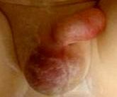 AHEI was once considered a variant of Henoch-Schnlein purpura (HSP) but today is recognized as a distinct entity. HSP, however, is still the primary differential diagnosis to be considered. Characteristics that distinguish the conditions include age of onset, which is younger for AHEI (approximately 4 to 24 months) than for HSP (peak age of 4 to 7 years). The systemic complications often seen in HSP (ie, arthralgia, gastrointestinal hemorrhage, nephritis) are extremely rare in AHEI. Clinically, HSP manifests with raised purpura on the extensor surfaces of the legs and on the buttocks. The larger erythematous-edematous purpura and the ecchymoses of AHEI are found on the face and extremities, with or without mucosal involvement; in our case the genitals were also affected. Other diagnoses to be excluded are meningococcemia, erythema multiforme, urticarial vasculitis, Kawasaki disease, and child abuse.