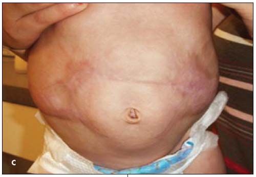7. Verhelle NA, Heymans O, Deleuze JP, et al. Abdominal aplasia cutis congenita: case report and review of the literature. J Pediatr Surg. 2004;39: 237-239.