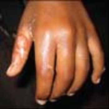 For 3 days, a 10-year-old boy had an itchy, tense, vesicular rash on the fingers of both hands (A). He was otherwise healthy.