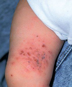 This rash has developed over the past few months in a 4-month-old girl. The infant does not seem to be bothered by it. Her mother thinks that the rash started a few days after a family picnic.