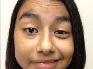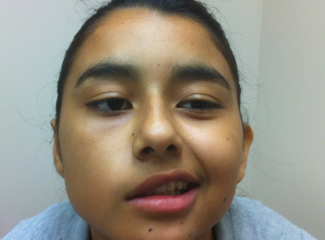 A 14-year-old girl presented to our office with a 1-week history of right-sided facial numbness. She woke up one morning with right ear pain, which was followed the next day by progressive paresthesia of the right side of her face. The patient denied any recent head injury and she was otherwise asymptomatic. Her vital signs were within normal limits for her age. Examination of the face revealed slight asymmetry, with disappearance of the nasolabial fold on the right side (Figure 1). The findings for the rest of her neurologic examination were within normal limits. Based on this assessment, a diagnosis was made of acquired idiopathic, unilateral facial paralysis (Bell Palsy).