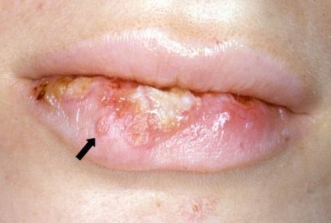 Treatment: Appropriate oral doses of acyclovir, valacyclovir, or famciclovir should be administered, and topical anesthetic given to prevent dehydration from lack of fluid intake relating to labial pain.