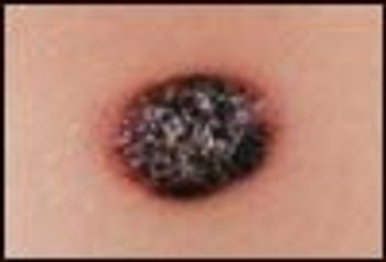 This pigmented lesion has developed over the past 12 months on the posterior aspect of a 3-year-old boy's thigh. The lesion measures 5 mm and exhibits a dark black nodular center with a light brown pigmented periphery. The lesion is asymptomatic, and the child is well.