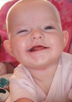 THE CASE: A 5-month-old girl presented with left facial droop of sudden onset. The infant had nasal congestion for the past 2 days, but had been eating well. There was no recent history of rash, trauma, medication use, or drug allergies. Her medical history included left clavicular fracture that occurred at birth from a difficult delivery; she also had nasolacrimal duct stenosis.