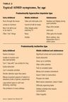 Signs and symptoms. In adolescents, the signs of ADHD may be subtle ormasked, and adolescents with ADHD may have fewer positive findings thanyounger children with the disorder.10 Adolescents are more likelythan children to have the subtle signs associated with the inattentive subtypeof ADHD: they don't finish tasks or listen to instructions; they lose theirschoolbooks and forget to bring in homework. When teens have the hyperactive-impulsivesubtype, the symptoms are more muted: hyperactivity shows up as fidgetiness;impulsivity manifests as a tendency to begin tasks before instructions havebeen completed or an appropriate strategy has been planned. Table 2contraststypical ADHD symptoms in children and adolescents.