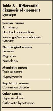 This patient's initial presentation of "passing out" is similar to what many think of as syncope. However, not all cases of sudden loss of consciousness and postural tone are syncope. It is important to consider all entities in the differential diagnosis of apparent syncope, which could include cardiac, neurological, metabolic, psychiatric, and other causes (Table 3).