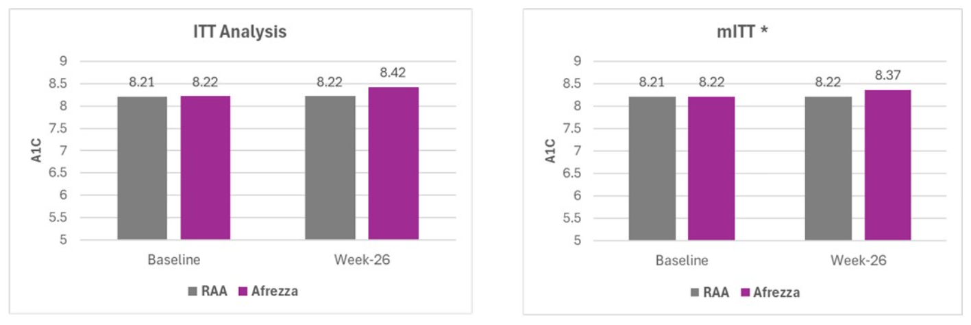 Between-group difference in mean HbA1c change over 26 weeks among the full intent-to-treat population (ITT) exceeded the pre-specified non-inferiority margin of 0.435%, "largely driven by the variability of a single patient who did not adhere to the study protocol," stated the company in a press release.