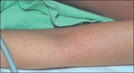 Treatment of a type IV hypersensitivity response depends on the severity of symptoms. Patients with mild reactions generally respond to symptomatic treatment with cool compresses or oral antihistamines. Those with moderate to severe reactions can be treated with topical corticosteroids in a strength appropriate for the body site affected7 or with topical macrolide immunomodulators, such as tacrolimus or pimecrolimus.8 Persons with acute, severe reactions should receive oral corticosteroids for 2 weeks. A tapering schedule is not necessary because of the short duration of therapy. Advise patients (or their parents) to complete the full 2-week course because of the risk of relapse associated with shorter therapy.7