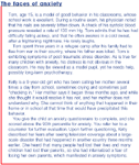 The reliability of diagnosed anxiety disorders based on the self reports of children has ranged from moderate to excellent. Young children, ages 6 to 11 years, and those with learning disabilities, however, have shown the poorest retest reliability.11 It should be noted that most self report measures of children's anxiety were developed on adult models without considering that children interpret language differently than do adults. For example, most adults associate "worry" with frequency of thought, whereas children under 10 years of age associate worry with aversiveness. In other words, young children interpret worry in terms of how bad they would find an event, rather than how often they think about an event.12 An additional problem with self-report measures from children is that they have little interest or ability to observe, understand, and evaluate internal processes. This capacity is not fully developed until late adolescence.13