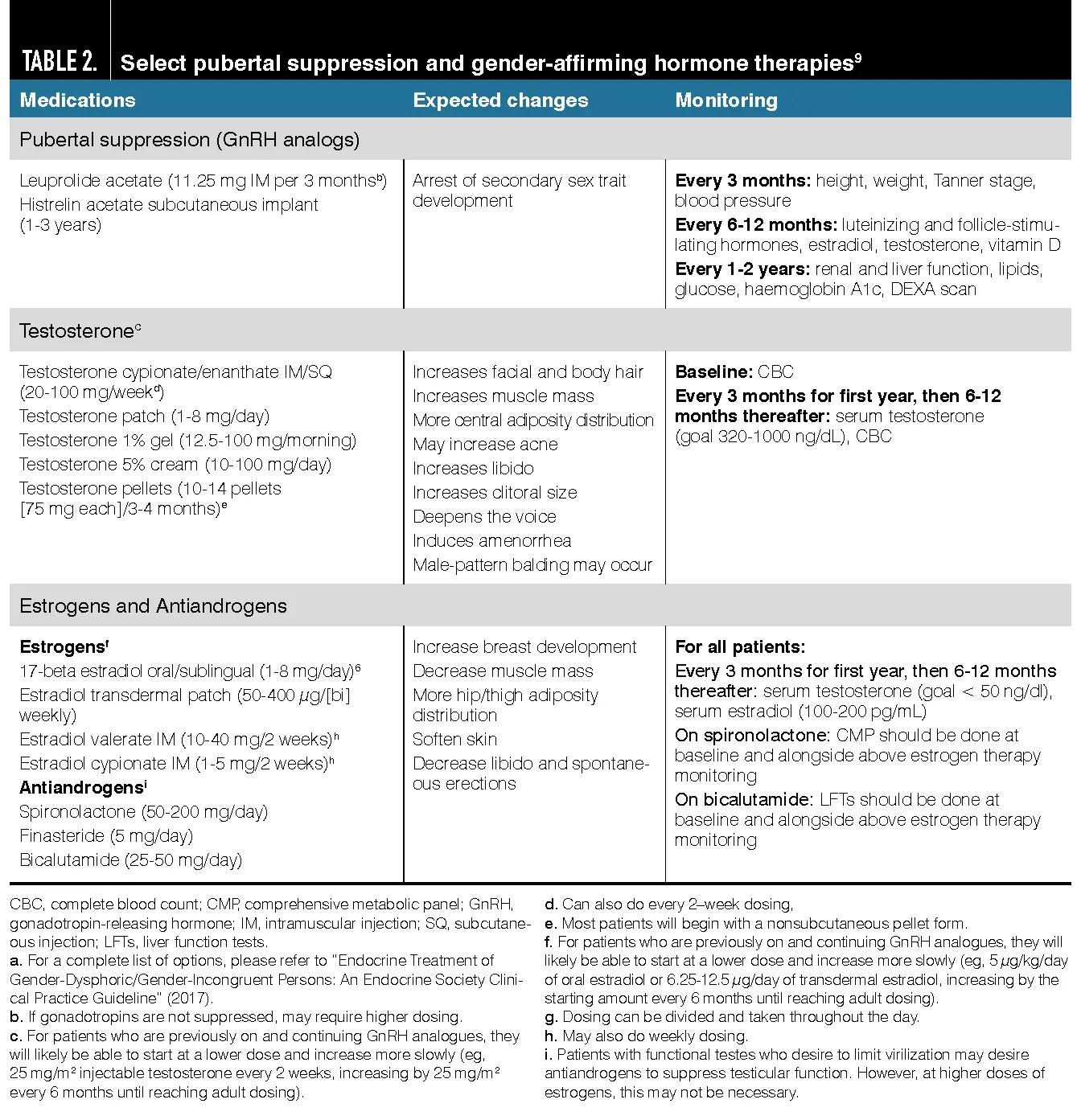 Table 2. Select pubertal suppression and gender-affirming hormone therapies9