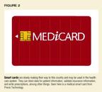 Smart cards are likely to revolutionize medical services because they can store a great deal of information. This technology can speed patient registration, validate insurance enrollment, generate referrals to approved specialists, store prescriptions and other medical forms, and facilitate the financial transactions that accompany office visits. Every German citizen has a medical smart card; the use of the cards has reduced administrative costs of the national health insurance program by some 35%. France is implementing a similar system to replace paper-based claim processing, and some insurance companies in the United States have made a beginning with magnetic stripe card readers. Smart cards are science fact, not science fiction.