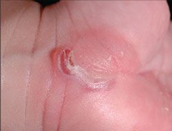 Case: The parents of this 5-month-old boy are concerned about recurring eruptions of blisters on the infant’s hands and feet. What question could you ask the parents that might quickly define the condition for you?