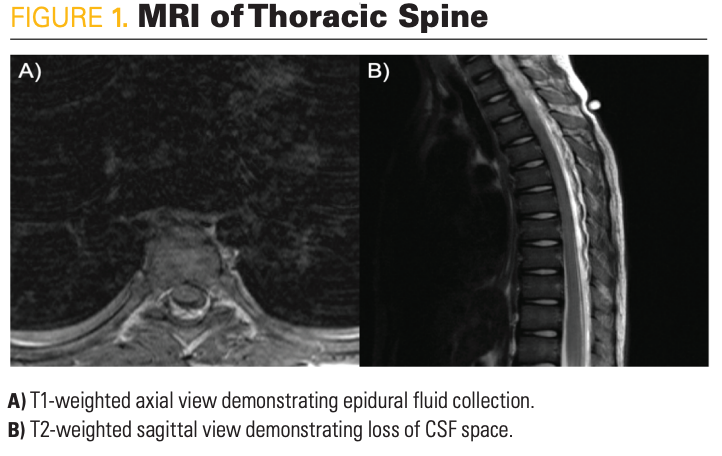 Notably, symptoms may fluctuate over time and mimic those found in other systemic conditions, with differential diagnoses listed in Table 2. Expansive diagnostic workup is required, including lab work and imaging.2 In our patient’s case, his CBC, inflammatory markers, and CSF analysis were all within normal limits, and his cultures were persistently negative, rendering infectious and autoimmune causes less likely especially in light of his unresponsiveness to a trial of IVIG. Even though he had low thiamine levels, genetic and metabolic etiologies were deemed unlikely given his negative chemistries and continued symptoms with thiamine repletion. Finally, the central and peripheral neurologic workups were unremarkable with the exception of epidural fluid collection, which the neurosurgery department thought would not have caused his clinical presentation.