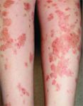Although the eruption is asymptomatic, no treatment has proven to be consistently effective. However, case reports have demonstrated improvement with a number of different therapies including topical steroids, oral griseofulvin (Fulvicin U/F, Grifulvin V, others), oral pentoxifylline (Pentoxil, Trental), and photochemotherapy (PUVA).3 Adolescents and young adults with widespread disfiguring lesions should be counseled about the innocent nature of PPD, and measures should be taken to camouflage them.
