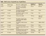 Garlic continues to have a role as an herbal remedy in many cultures and is prescribed by naturopathic physicians for a variety of medical reasons.5 Currently, research is being done on the potential use of garlic and is affirming the validity of ancient medical practices.5 It is now used for its presumed cardiovascular, anti-neoplastic, and antimicrobial properties.6 Like many herbs, however, garlic it is not without adverse effects. Garlic has been reported to cause bronchospasm, nausea, vomiting, diarrhea, hypoglycemia, contact dermatitis, and chemical burns.6-16