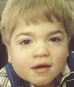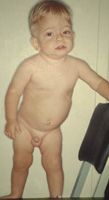 Physical examination revealed a large, somewhat lethargic child with unusual facies (Figure 1). Height, 32 inches (greater than the 97th percentile for age, 50th percentile for 18 months); weight, 24.5 lb (greater than the 97th percentile for age; 50th percentile for 16 months); and head circumference, 18.5 inches (50th percentile for 12 months). He had a small anterior fontanelle with prominent forehead, mild hypertelorism, a shallow nasal bridge with clear nasal mucus discharge, and a short neck.
