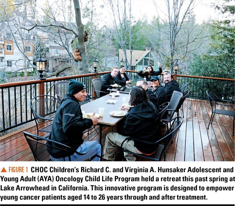 Things changed at CHOC in the middle of Meza’s 3 years of inpatient and outpatient cancer treatment. Children’s Hospital of Orange County started offering activities aimed at engaging teenagers and young adults. First it was simply a competition to encourage adolescents and young adults, known as AYAs, to get out of bed and walk the halls. Today, CHOC offers an assortment of social and educational activities through its Richard C. and Virginia A. Hunsaker AYA Oncology Child Life Program (Figure 1).