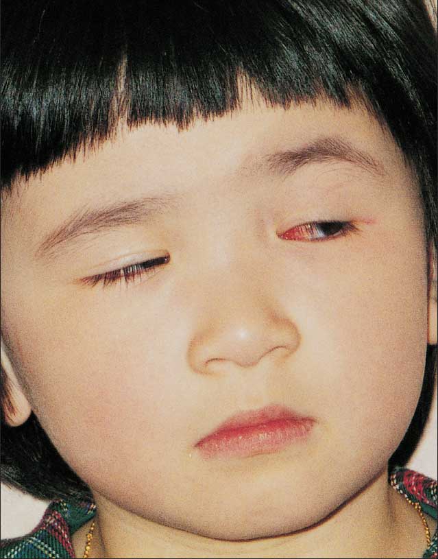 The child had periorbital cellulitis. This condition can be caused by trauma, an infected wound, or sinusitis. The usual causes are Haemophilus influenzae, pneumococci, streptococci, and staphylococci. Proptosis, decreased vision, and decreased eye mobility indicate orbital extension.