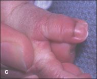 The infant had no other apparent abnormalities. He had been born at term after a normal pregnancy and uncomplicated delivery. The mother had 2 sisters; each had 1 child with ulnar polydactyly-nubbin accessory digits on the little fingers.